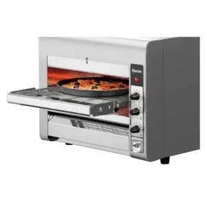 Pizzas et snacks sur tapis roulant : avec le four à pizza à convoyeur, vous réussissez vos pizzas, vos baguettes garnies et vos toasts. Le réglage individuel de la vitesse de la bande de convoyage permet d’obtenir des préparations croustillantes et délicieuses.